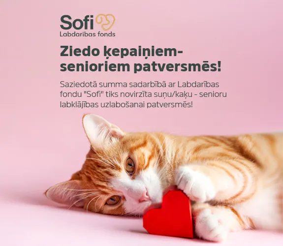 Saziedotā summa sadarbībā ar Labdarības fondu “Sofi” tiks novirzīta suņu/kaķu-senioru labklājības uzlabošanai!